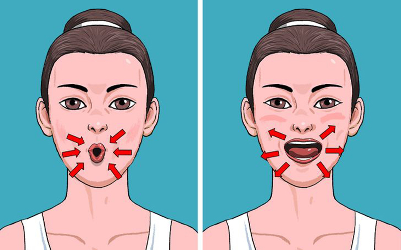 Hãy cố cười mím môi thật rộng và giữ trong vòng 5 giây rồi cũng thực hiện động tác chu môi như đang hôn trong 5 giây sau đó lặp lại 20 lần hàng ngày.