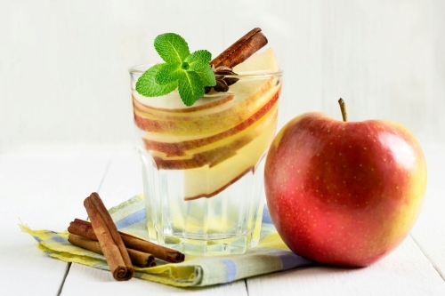 - Cho táo thái lát và thanh quế vào bình chứa 1 lít nước.