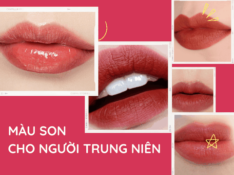 Phụ nữ trên 50 chính thức gặp các vấn đề lão hoá. Da môi chùng xuống, mất đi sự căng mọng, môi trở nên mỏng hơn. Lúc này, nên dùng những màu son có độ bóng cùng màu son đỏ cam hay có sắc đỏ thẫm song màu sắc này phải tươi sáng hơn so với tone màu da, có thể thêm một chút son dưỡng hoặc dùng rất son có độ bóng để mang lại cảm giác căng mọng cho đôi môi.