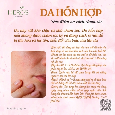 Da hỗn hợp là làn da kết hợp giữa hai hoặc nhiều loại da khác nhau. Bởi thế việc chăm sóc nó trở nên phức tạp hơn. Nếu chăm sóc không đúng cách, da sẽ bị tổn thương và dễ...