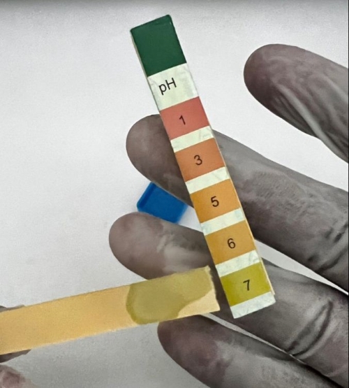 - Ấn dải thử pH lên vùng da ẩm trong 10-20 giây để dải hấp thụ độ pH bề mặt.