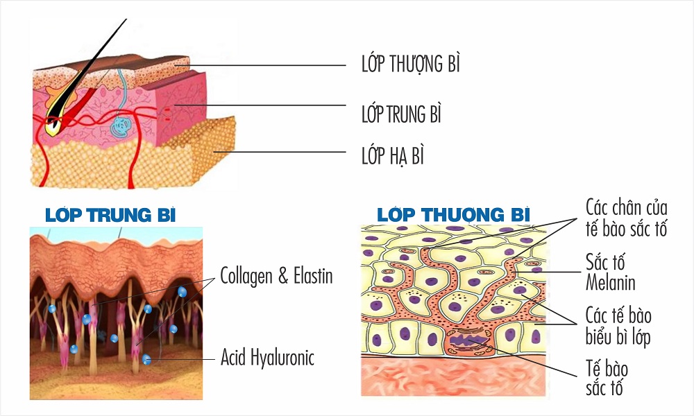 Da thường được cấu tạo từ ba lớp tách biệt: Biểu bì, trung bì và hạ bì. Biểu bì chính là lớp da ở phía ngoài cùng mà chúng ta có thể nhìn và chạm vào được, chúng bao gồm các tế bào đã chết, do đó có chức năng bảo vệ chúng ta tránh khỏi các độc tố, vi khuẩn và giúp tránh mất các chất lỏng cần thiết.