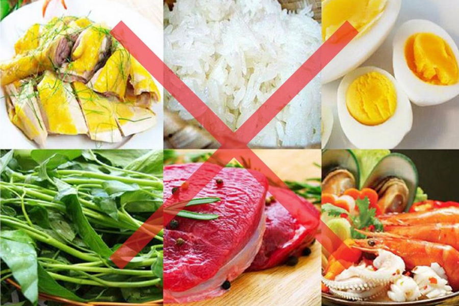 Kiêng một số món dễ gây thâm môi và dị ứng như thịt bò, thịt chó, đậu đen, mắm tôm, hải sản…