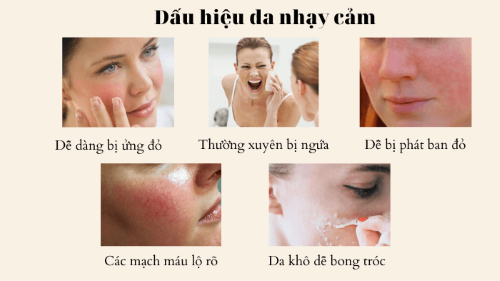 - Da nhạy cảm thường lộ rõ mao mạch máu