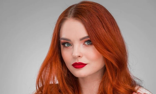 Tóc auburn + son classic red: Nổi bật, ấm áp.