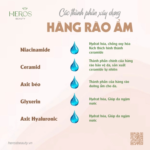 Hàng rào ẩm được xem như một hỗn hợp tự nhiên giàu lipid gồm ceramides, cholesterol và acid béo. Chúng hoạt động như tuyến phòng thủ đầu tiên của da. Một hàng rào độ ẩm khỏe mạnh giúp ngăn chặn ô nhiễm và vi khuẩn đồng thời giữ độ ẩm cho da.