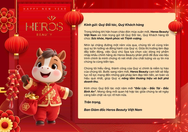 Trong không khí hân hoan chào đón mùa xuân mới, Heros Beauty Việt Nam xin trân trọng gửi tới Quý Đối tác, Quý Khách hàng lời chúc Sức khỏe, Hạnh phúc và Thịnh vượng.