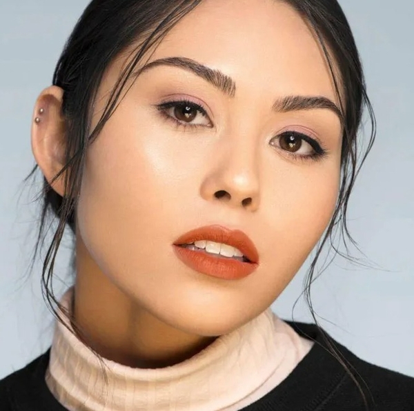 Son sắc nâu kết hợp makeup nhấn nhá ở phần mắt sẽ giúp gương mặt mặt trở nên nổi bật, cá tính. Tone son này mang lại sự ấm áp, cho làn da ngăm giàu sức sống hơn.