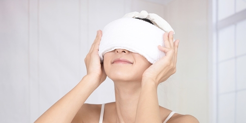 - Dùng khăn bọc đá, túi trà xanh nguội, hoặc thìa lạnh chườm lên mắt 10-15 phút, 1-2 lần/ngày để giảm sưng và cải thiện lưu thông máu.
