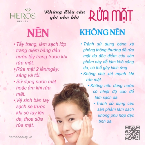 Trên đây là một số điều cần nhớ khi làm sạch da mặt. Các bạn hãy lưu lại và thực hiện nhé. Heros Beauty đảm bảo rằng da mặt bạn sẽ luôn sạch khỏe, sáng mịn, và căng bóng!
