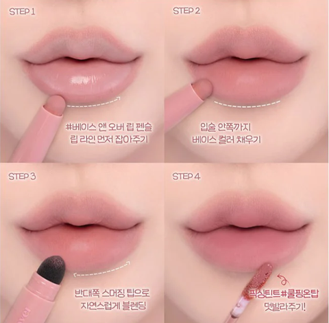 Dùng cọ hoặc ngón tay tán đều từ phần môi trong ra viền môi để tăng chiều sâu và độ tự nhiên cho đôi môi.
