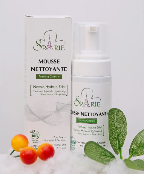 Sữa rửa mặt Sparie (MOUSSE NETTOYANTE): Là sữa rửa mặt hữu cơ tạo bọt mềm mịn không chứa Xút, được chiết xuất từ các loại hoa, quả hữu cơ, chăm sóc da hiệu quả cho da dầu, da mụn, da hỗn hợp hay da nhạy cảm.