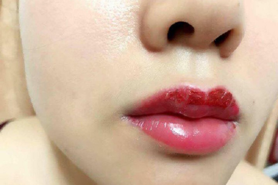 Do quá trình di kim, bờ môi thường trở nên sưng đau, nhức nhối, căng tức, đối diện với nguy cơ nhiễm trùng nếu không được vệ sinh và chăm sóc đúng cách.